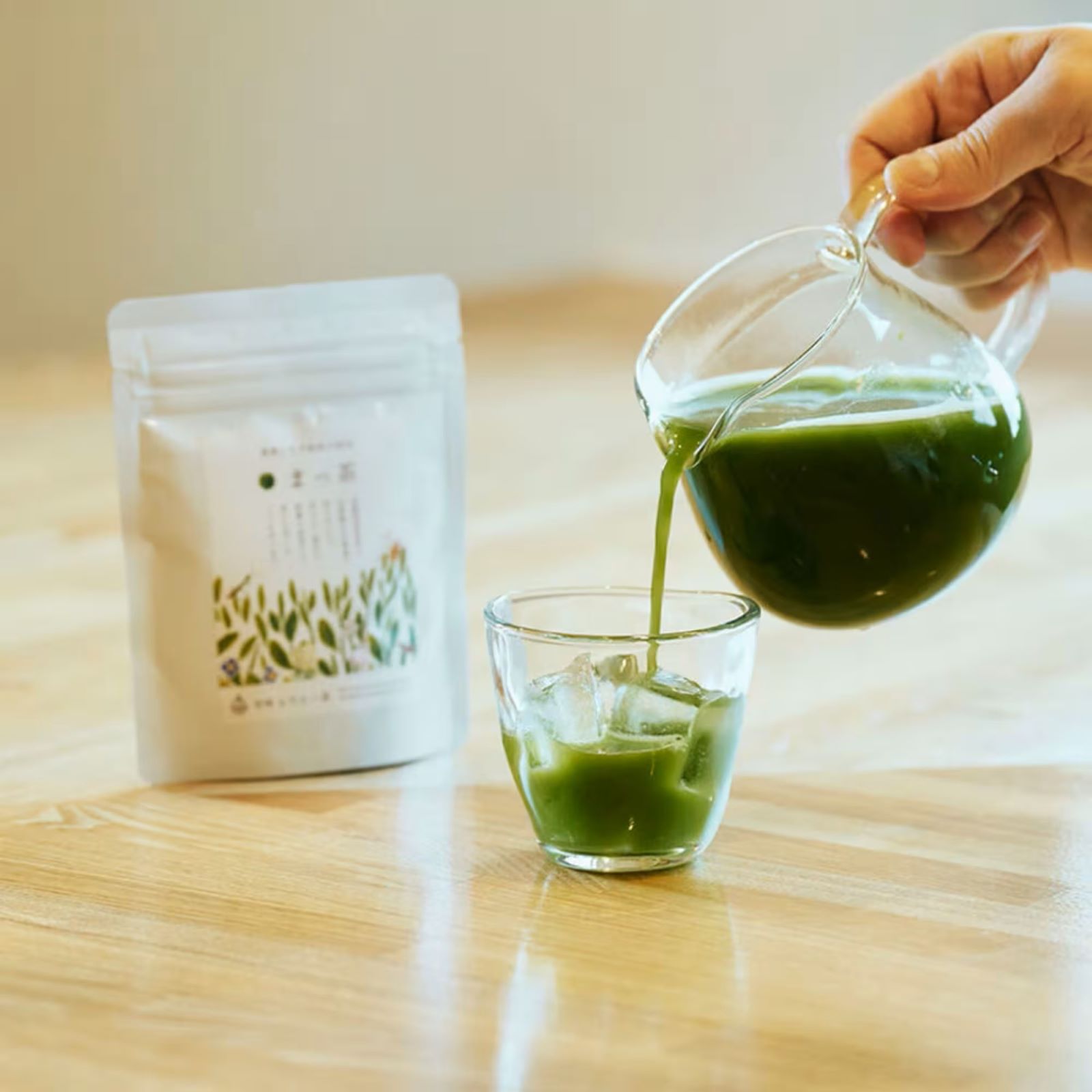 【飲み方】 カップ1杯分に対し、0.3〜0.5gくらい(ティースプーン半分〜1杯くらい)、濃さはお好みで。 冷茶なら氷水でシェイク。簡単で栄養豊富な冷茶ができます! HOTの場合は、約80度のお湯で溶いてください。 炭酸割りや焼酎割りもとても美味しく飲んでいただけます。 ご自由にアレンジも楽しいです。