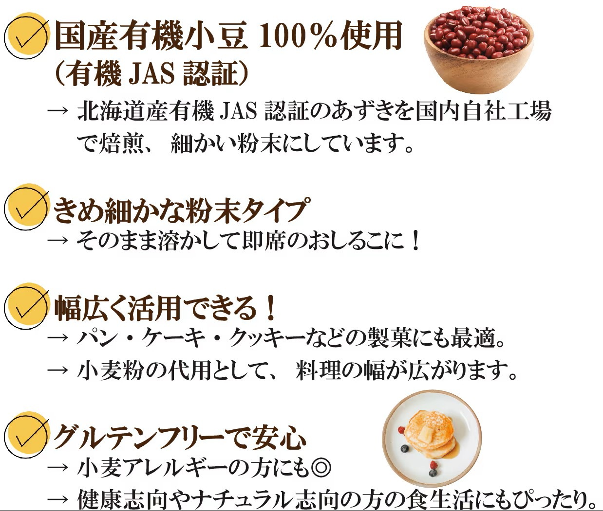 【有機JAS認証の小豆をまるごと粉末に!】有機あずき粉 80g